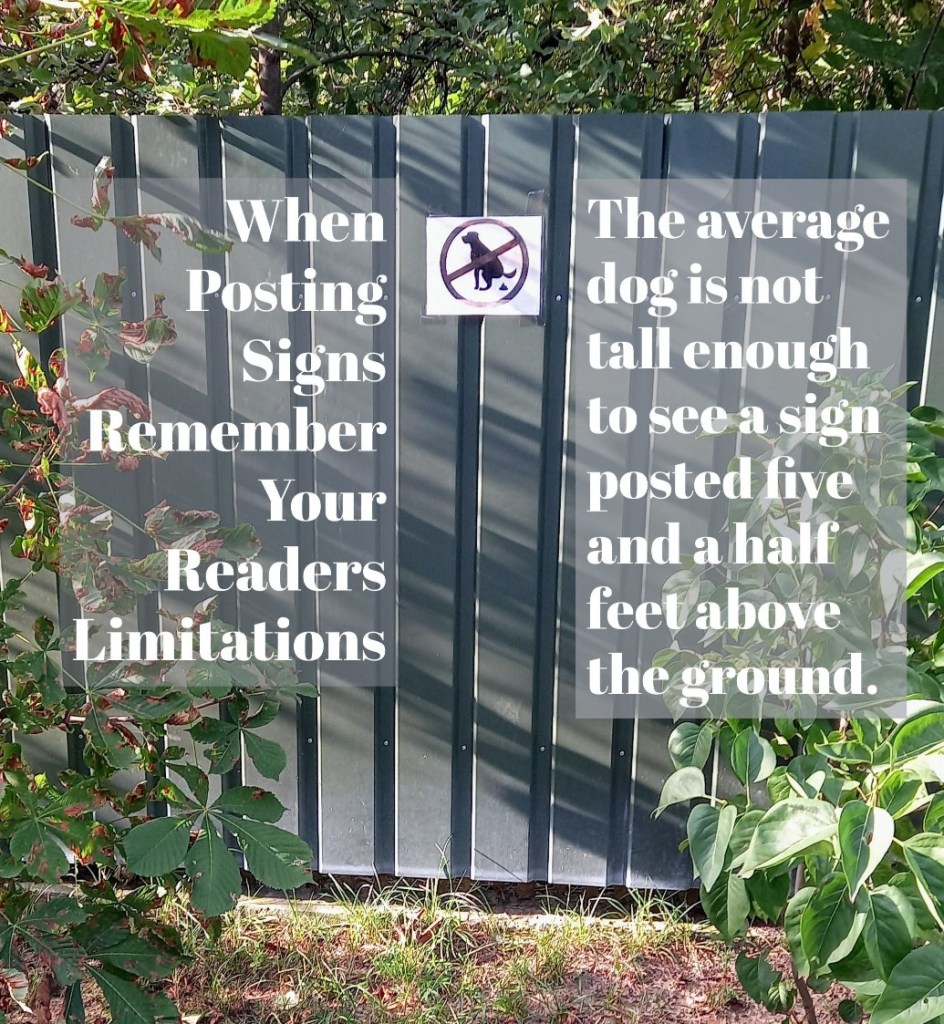 The sign below is the perfect example of how to post a sign for optimal results.