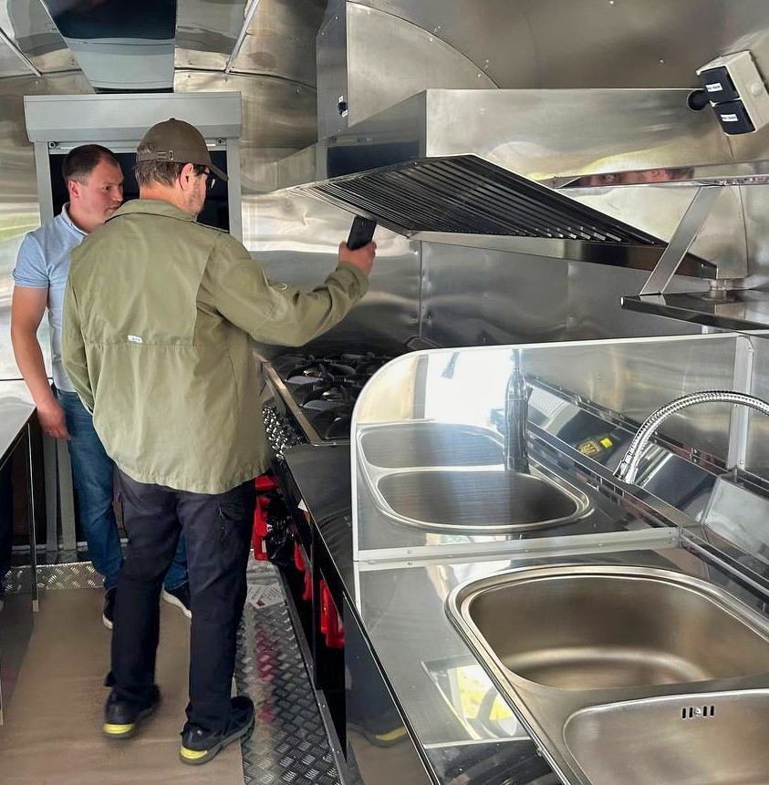 Recently I passed through his city and I had the opportunity to take a look at the progress on their project. Like most things that are worthwhile in life, the project has not been easy, but Grisha and his team have learned a lot about trailers and mobile kitchens throughout the process. The task of designing, ordering and securing the mobile kitchen fell to Igor, who was happy to walk me through it and explain what things were and where everything will go.