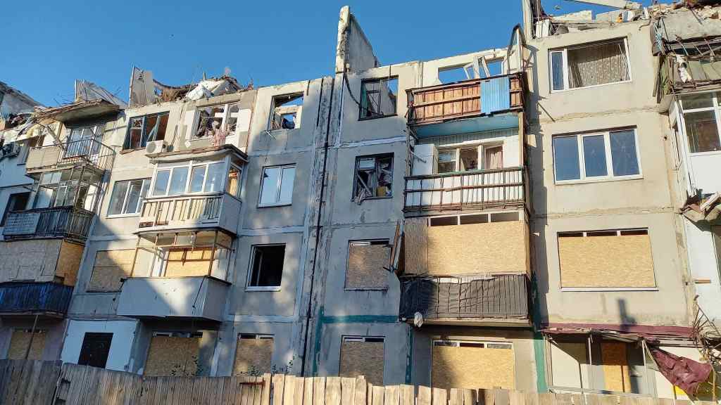 Russia’s bombs turned this five-story apartment/condo building in Pokrovsk last year into a four-story condemned building. A friend’s church was previously on the first floor.